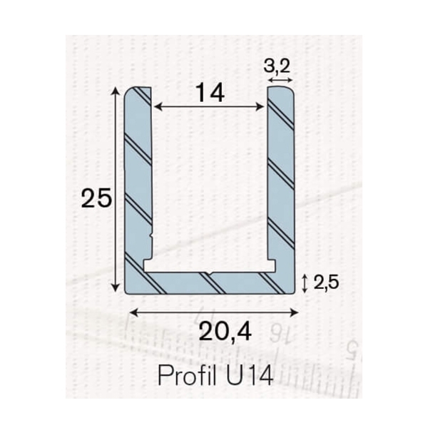 Profil 25x20x3000m, largeur intérieure 14mm,longueur 3000